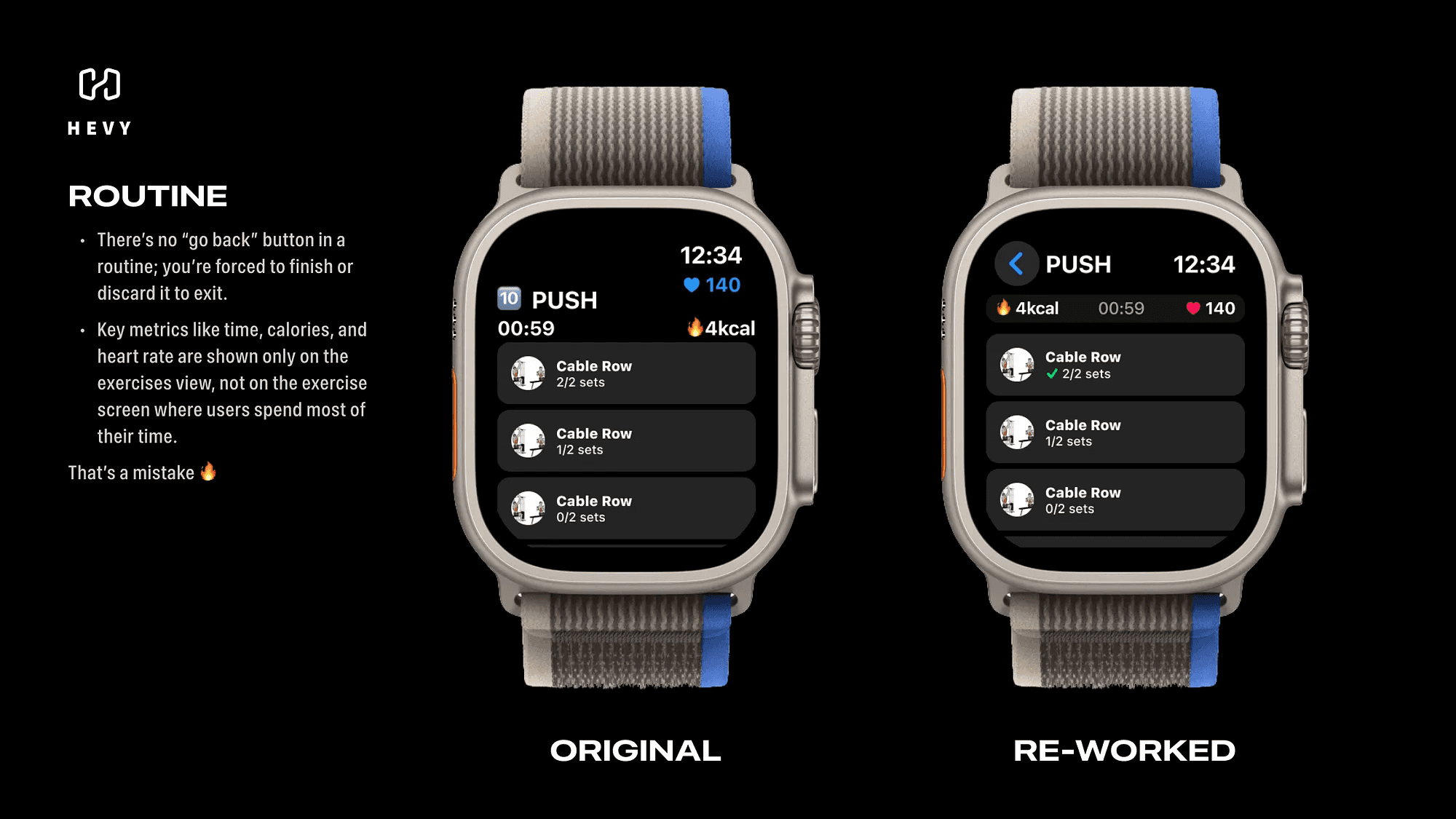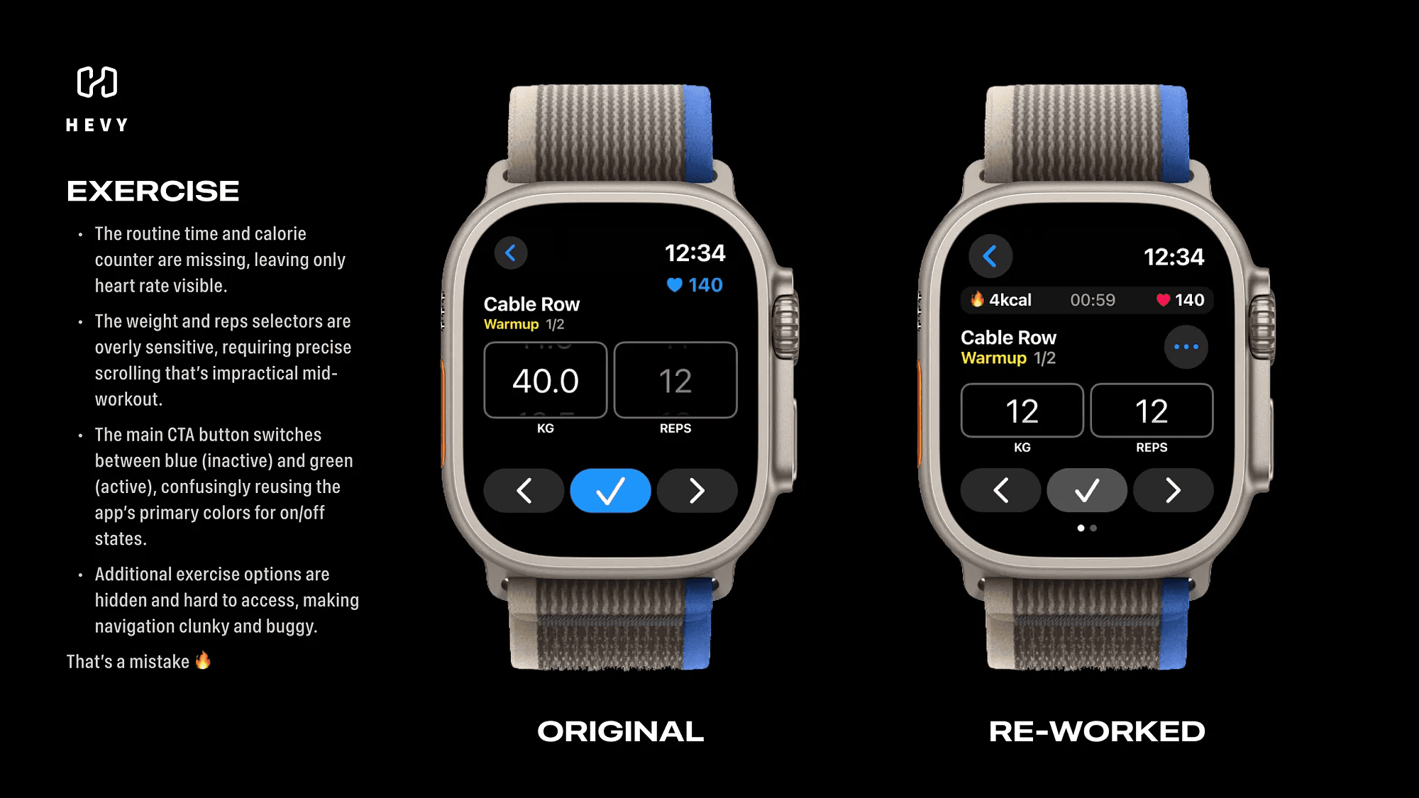 I want to talk about the gaps I noticed using Hevy on the Apple Watch and offer some practical, simple design fixes. If Hevy ever reads this, maybe they’ll use these ideas to improve the app.
